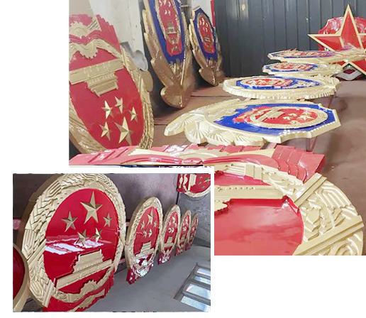 大型國徽制作、警徽制作、消防徽制作、武警徽制作、海警徽制作、新款市場監督管理徽等;
